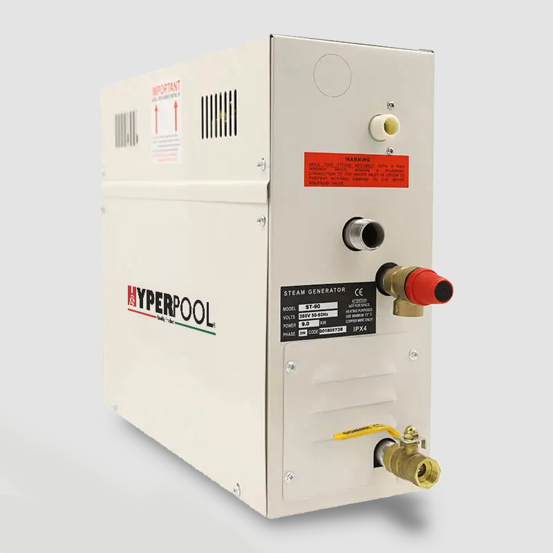 دستگاه مولد بخار برقی هایپرپول Hyperpool سری ST در ظرفیت های 4 الی 9 کیلووات تک فاز و 6 الی 15 کیلووات سه فاز موجود بوده که مناسب برای سونای بخار با ابعاد 5 الی 21 متر مکعب میباشند. مهمترین عوامل در انتخاب هیتر سونای بخار عبارت است از حجم فضای سونا (طول*عرض*ارتفاع) به متر مکعب و اطلاع از برق مصرفی (تک فاز و سه فاز).