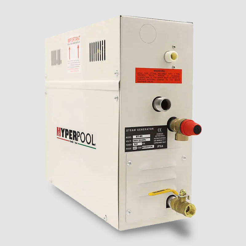 دستگاه مولد بخار برقی هایپرپول Hyperpool سری ST در ظرفیت های 4 الی 9 کیلووات تک فاز و 6 الی 15 کیلووات سه فاز موجود بوده که مناسب برای سونای بخار با ابعاد 5 الی 21 متر مکعب میباشند. مهمترین عوامل در انتخاب هیتر سونای بخار عبارت است از حجم فضای سونا (طول*عرض*ارتفاع) به متر مکعب و اطلاع از برق مصرفی (تک فاز و سه فاز).