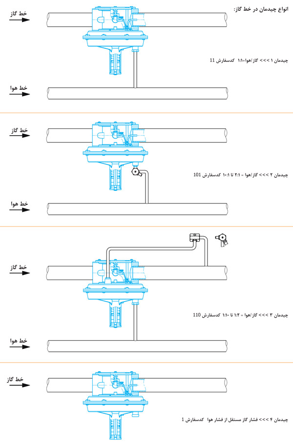 انواع چیدمان رگلاتور کنترل نسبت هوا گاز در خط گاز