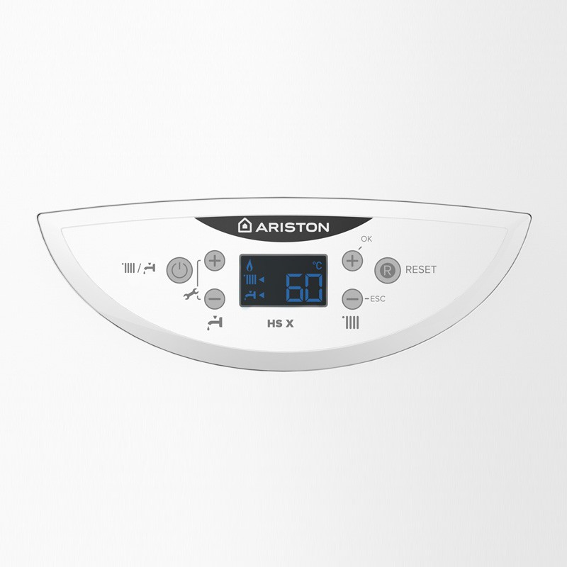 پکیج های آریستون سری HS X تنها در ظرفیت 24 کیلو وات همراه با دو مبدل حرارتی (مبدل اولیه آلومینیومی و مبدل ثانویه استنلس استیل صفحه ای) و با گرید انرژی A به بازار ارائه میشود. این محصول دارای نمایشگر ال سی دی کوچک، سیستم آنتی فریز، فیلتر در مسیر آبگرم بهداشتی و برگشت مسیر گرمایش، مبدل آلومینیومی و برنامه رسوبزدایی برای مبدل دوم می باشد.