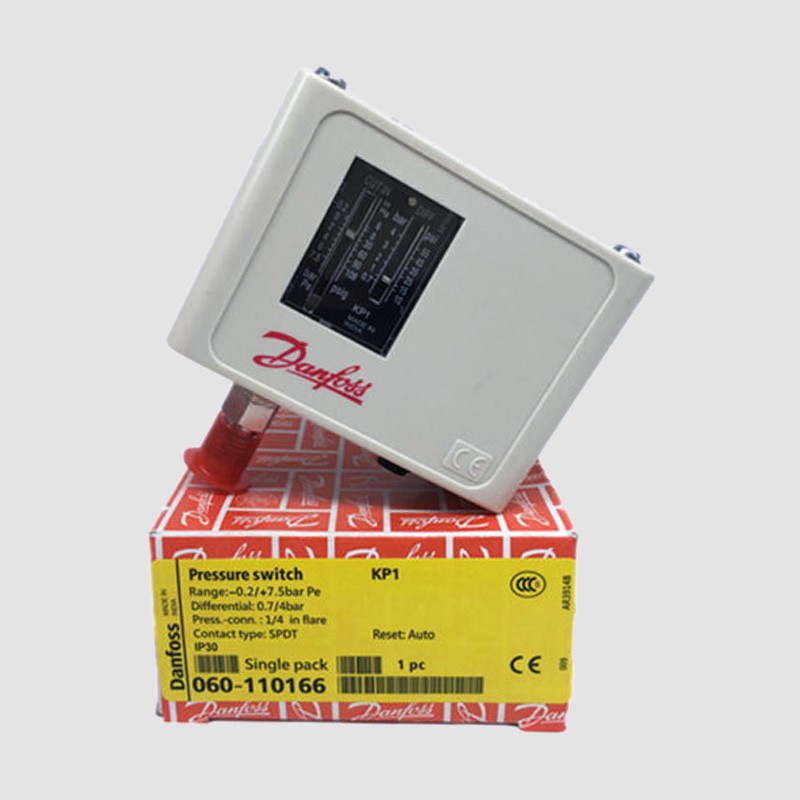 پرشر سوئیچ (سوئیچ فشار) دانفوس Danfoss سری KP مناسب برای سیال آب و هوا (بستگی به مدل) می باشند و در رنج فشار های متفاوت عرضه می‌شوند. این دستگاه در سیتم های تبرید و تهویه مطبوع برای محافظت از فشار بسیار کم (Low pressure) یا فشار تخلیه بسیار بالا (High pressure) استفاده می‌شود. همچنین این پرشر سوئیچ برای راه‌اندازی و توقف کمپرسور ها در کندانسور های هوا خنک نیز کاربرد دارد.