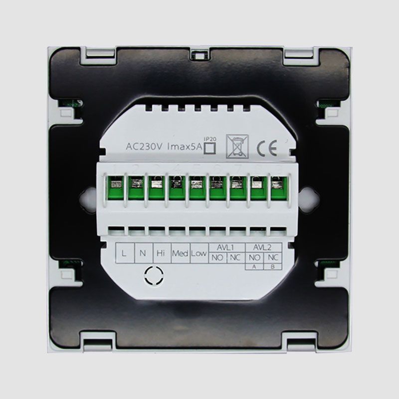ترموستات دیجیتال بیوک BEOK مدل TDS21 یک ترموستات با صفحه لمسی خازنی با کیفیت بالا و صفحه نمایش شیشهای بزرگ همراه نمایشگر دیجیتال دمای محیط و دمای تنظیم شده (سانتیگراد) می باشد. نصب این ترموستات بهصورت توکار بوده و نیاز به قوطی برق استاندارد اروپا داخل دیوار دارد. ترموستات بیوک BEOK مدل TDS21 مناسب برای کنترل سیستم های فن کویل سه دور بوده و دارای کاربری آسان برای تمام سنین همراه با سه مد Heat/Cool/Ventilation (گرمایش/سرمایش/فن) میباشد.