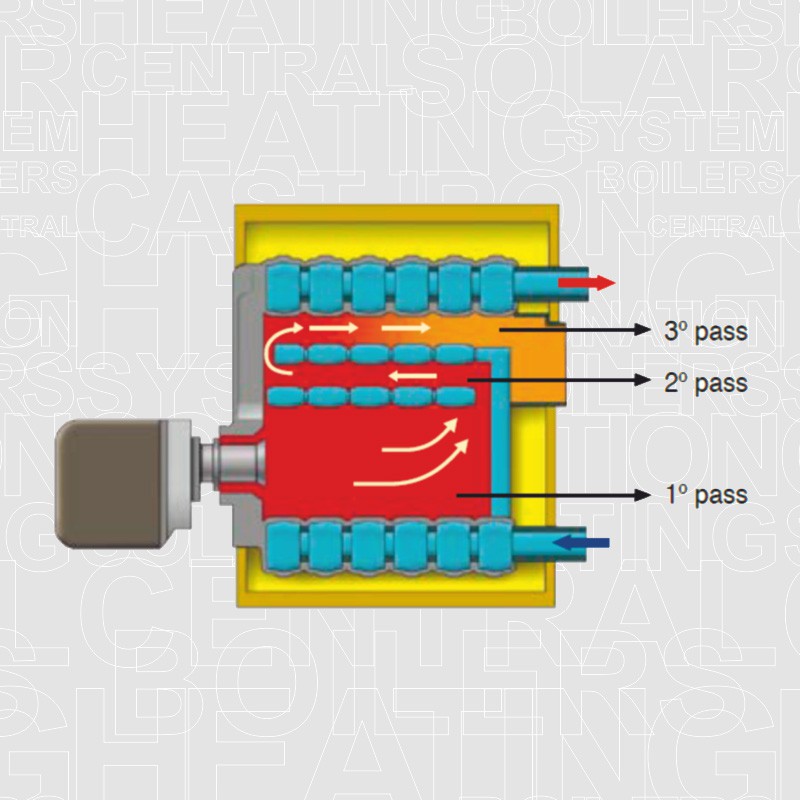 - حداکثر انتقال حرارت در روند احتراق به دلیل گذر شعله و دود از سه پاس