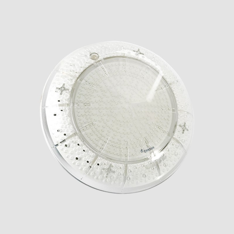 چراغ های استخری ایمکس Emaux سری E-LUMEN از نوع روکار همراه با پنل پلاستیک ABS، رینگ استیل 304 و قطر 26 سانتیمتر می باشد. چراغ های سری E-LUMEN ایمکس در سه نوع نور مهتابی (سفید یخی)، آفتابی و RGB همراه با سه مدل 252، 441 و 531 LED به بازار عرضه شده است. این محصول قابلیت نصب در دیواره بتونی و وینیل (رزین) را با پایه اختصاصی مختلف دارد.