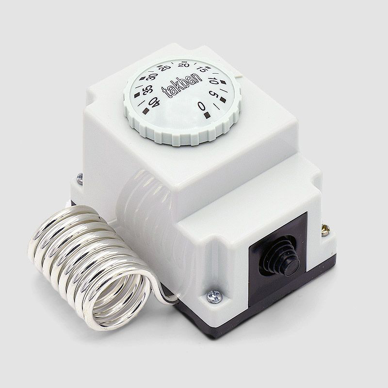 ترموستات محیطی تکبان مدل TLV93F که به ترموستات مرغداری تکبان هم معرف هست جهت استفاده در گلخانه ها، مرغداری و دامداری ها و محیط های کارگاهی و صنعتی با رنج دمایی 0 الی 40 درجه سانتیگراد میباشد. نحوه کار ترموستات های محیطی از طریق یک سنسور فنری بوده که بصورت آزاد در فضای محیط قرار میگیرد. این سنسور در تماس با هوای محیط بوده و با یک فرمان قطع و وصلی میتواند هیتر های گرمایشی صنعتی و جت هیتر ها را کنترل نماید. این دستگاه قابلیت ارسال فرمانهای تک مرحلهای (On/Off) را دارد.